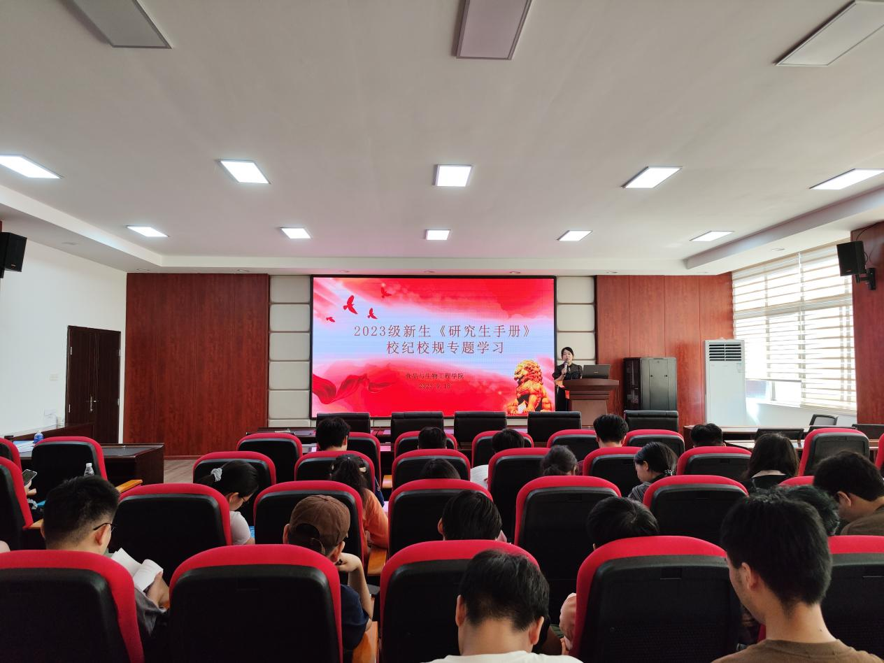 9月18日上午,食品学院在工科三号楼A320开展了《研究生手册》校纪校规专题学习,研究生辅导员胡佳佳主讲。