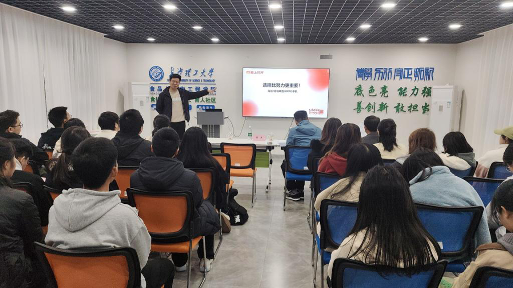 为帮助研究生树立正确的就业观念、提升职业竞争力,11月18日下午,食品与生物工程学院在“食代新生”“一站式”育人社区开展2025级研究生职业发展与就业指导课程。本次课程特邀2004级生物工程专业校友、麦上花开总经理彭杰担任主讲嘉宾。食品学院院长王建辉出席,40余名研究生参与学习。