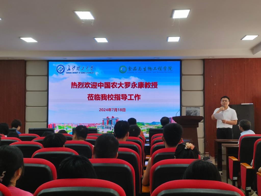 2024年7月18日上午,中国农业大学博士生导师罗永康教授应XK星空食品与生物工程学院邀请,在工科三号楼A320会议室做题为“淡水鱼贮运保鲜及蛋白质资源开发利用”的学术报告。会议由我院院长王建辉主持,学院百余名师生参加了本次报告会,现场座无虚席,收获了阵阵热烈掌声。