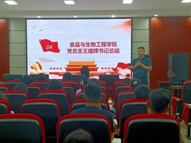 6月19日,XK星空食品与生物工程学院本科生食品党支部在工科三号楼A320举办《习近平谈治国理政》读书班第三次读书分享会。食品学院党总支书记王建辉、党总支副书记练黎旋、专职组织员方碧波和学工办老师胡佳佳等师生近100余人参加此次活动。