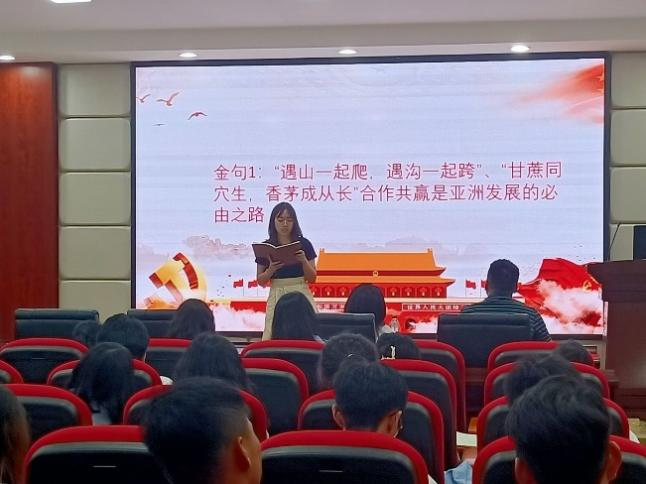 在金句分享环节中,读书班学员邹秀芝表示,合作共赢是亚洲发展的必由之路,要用对话合作取代和博弈,用开放包容取代封闭排他,用交流互鉴取代唯我独尊,各国同心协力推动亚洲的发展。