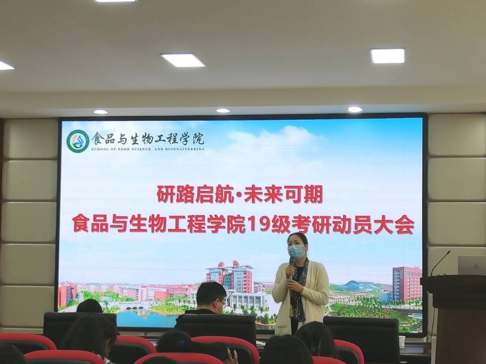 4月19日下午,食品与生物工程学院在工三A320召开2019级“研路启航,未来可期”考研动员大会。学院党总支负责人王建辉、院长程云辉、副院长许宙、食品学科带头人李向红、生物学科带头人文李、年级辅导员熊英及19级全体同学参加了本次会议。会议由副院长许宙主持。