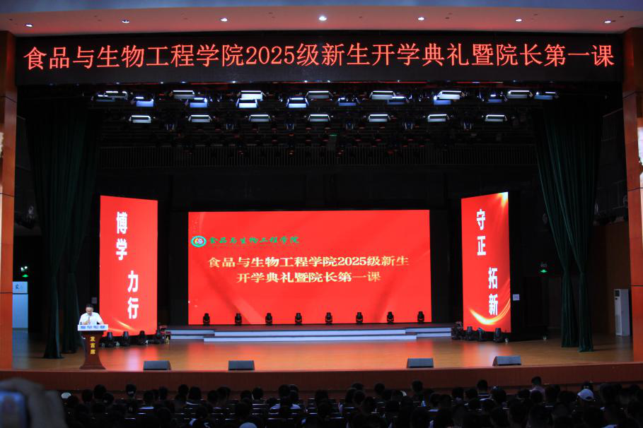 9月17日晚,食品学院2025级新生开学典礼暨院长第一课于云塘校区大会堂隆重举行。食品学院领导班子成员、2025级新生班主任及全体学工办老师出席,与404名本科生及81名研究生新生齐聚一堂。开学典礼由院党委副书记练黎旋主持。