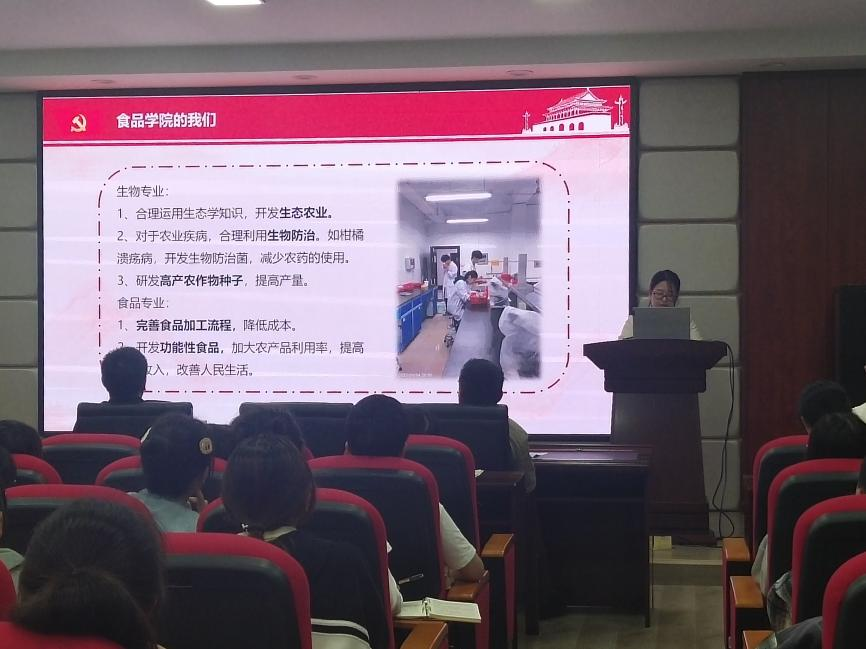 4月27日晚,食品学院学生党支部在工三A320开展了“二十岁遇上二十大”——党的二十大精神学习分享会第四期“树立大食物观,端稳中国饭碗”。食品学院党总支书记王建辉、副书记练黎旋、学工办老师胡佳佳等师生80余人参加本次活动。