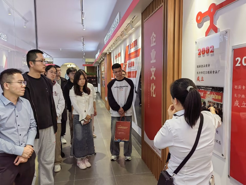 在得知实践团成员均为长理食院学子时,湖南省湘味餐调领头雁企业湖南佳元禄食品有限公司的讲解员还重点介绍了公司与我院联合创建了的全国首家味道创新研究院,共建了湖南省湘味餐调智造与质量安全工程技术研究中心,打造了首个湖南省佳元禄味型创新创业团队,推动复合酱料的产业升级,让产品更健康、口感更美味。同时,鼓励同学们传承湘菜传统文化,以扎实学识积极投身湘菜高质量发展事业,努力把湘菜品牌擦得更亮,并热忱欢迎大家前来实习、就业。
