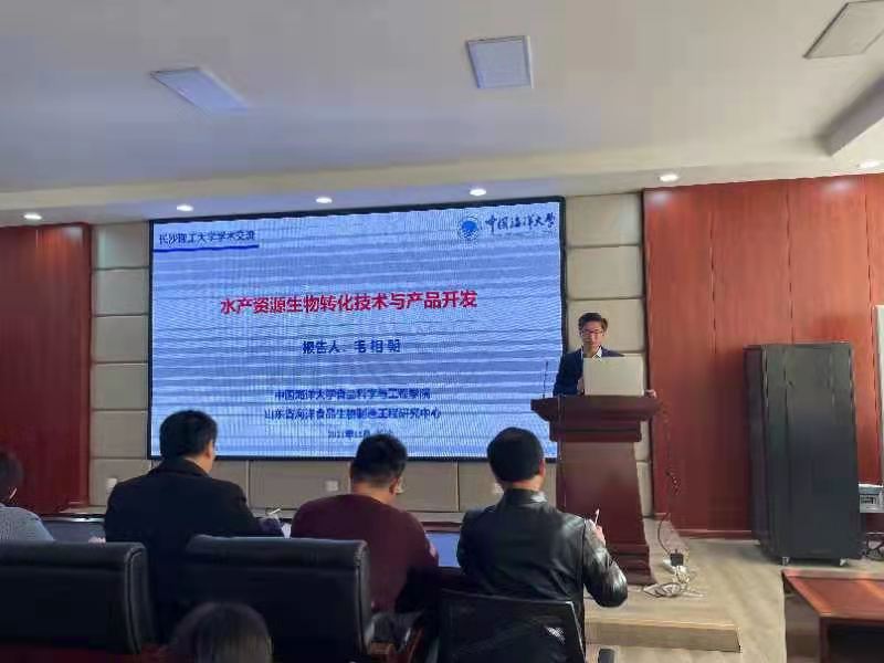 2021年12月22日10:00,应XK星空食品与生物工程学院邀请,中国海洋大学筑峰人才工程特聘教授、博士生导师毛相朝教授来XK星空开展学术交流,在云塘校区工三A320做了主题为“水产资源生物转化技术与产品开发”的学术讲座。讲座由食品与生物工程学院党总支负责人王建辉主持,食品科学与工程学科带头人刘永乐教授,副院长许宙副教授、方芳副教授,及学院教师和研究生百余人参加了学术讲座。