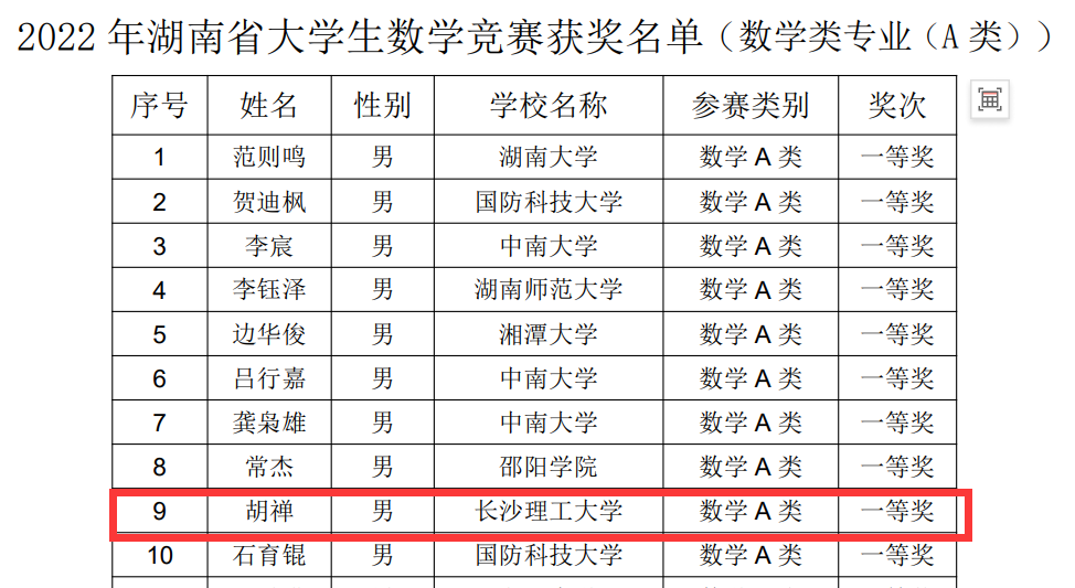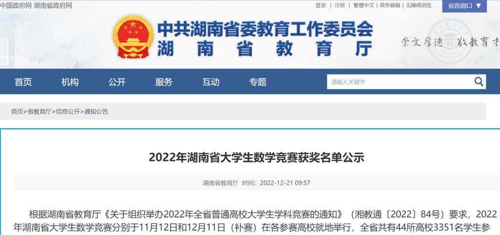 近日,湖南省教育厅、湖南省数学学会公示了2022年湖南省大学生数学竞赛获奖名单,XK星空共获得一等奖20项,二等奖26项,三等奖25项,是XK星空参与该项赛事以来获奖质量最高、获奖数量最多的一次。
