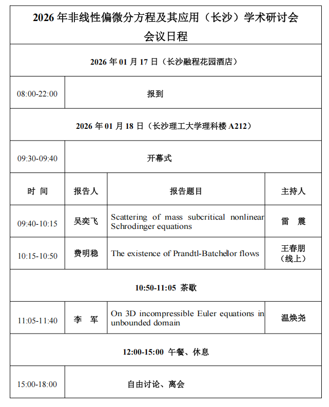 2026非线性偏微分方程及其应用(长沙)学术研讨会相关安排