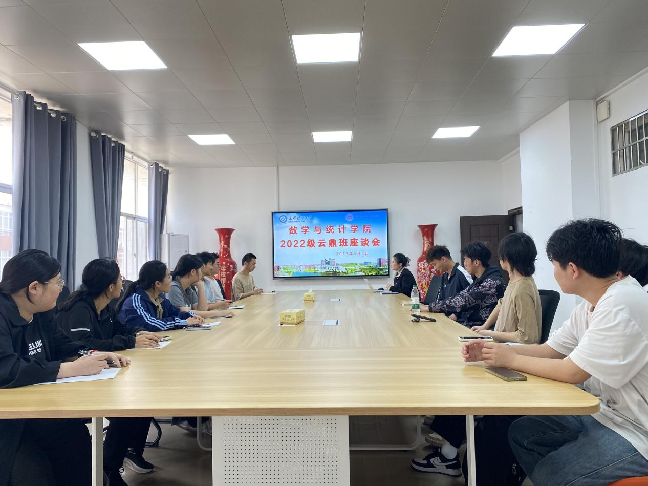 4月8日下午,学院在理科楼A410举办2022级云鼎班座谈会。会议由学院副院长、2022级云鼎班班主任李姣主持,学院2022级云鼎班全体成员参与。