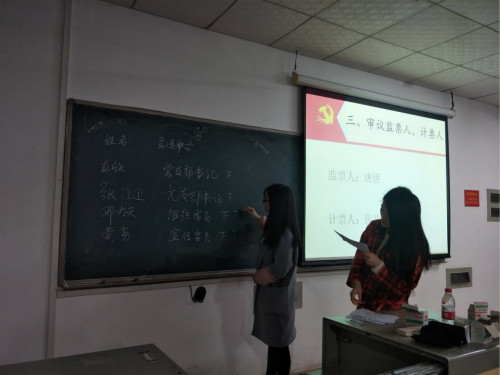 本次选举采取无记名投票和差额选举方式,根据得票数选举了龙欣、邓力天和黄芬3名同志为研究生统计党支部新一届支委委员。