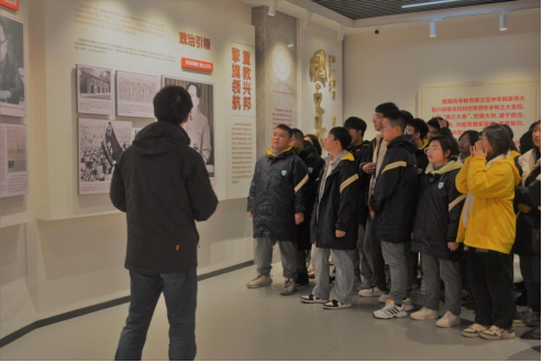 长沙市同升湖高级中学师生先到学校“三全育人”教育基地参观学习,开启研学之旅。