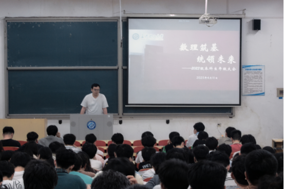 4月11日晚,数学与统计学院于工科一号楼A106召开2023级年级大会。本次大会以“数理筑基,统领未来”为主题,学院党委副书记兼副院长郑忠辉、班导师、优秀学生代表出席。会议由年级辅导员张潇腾主持,2023级全体本科生参加。