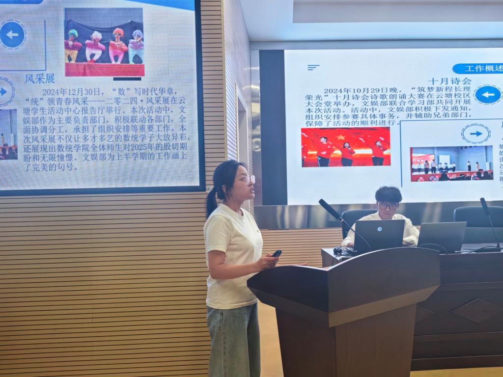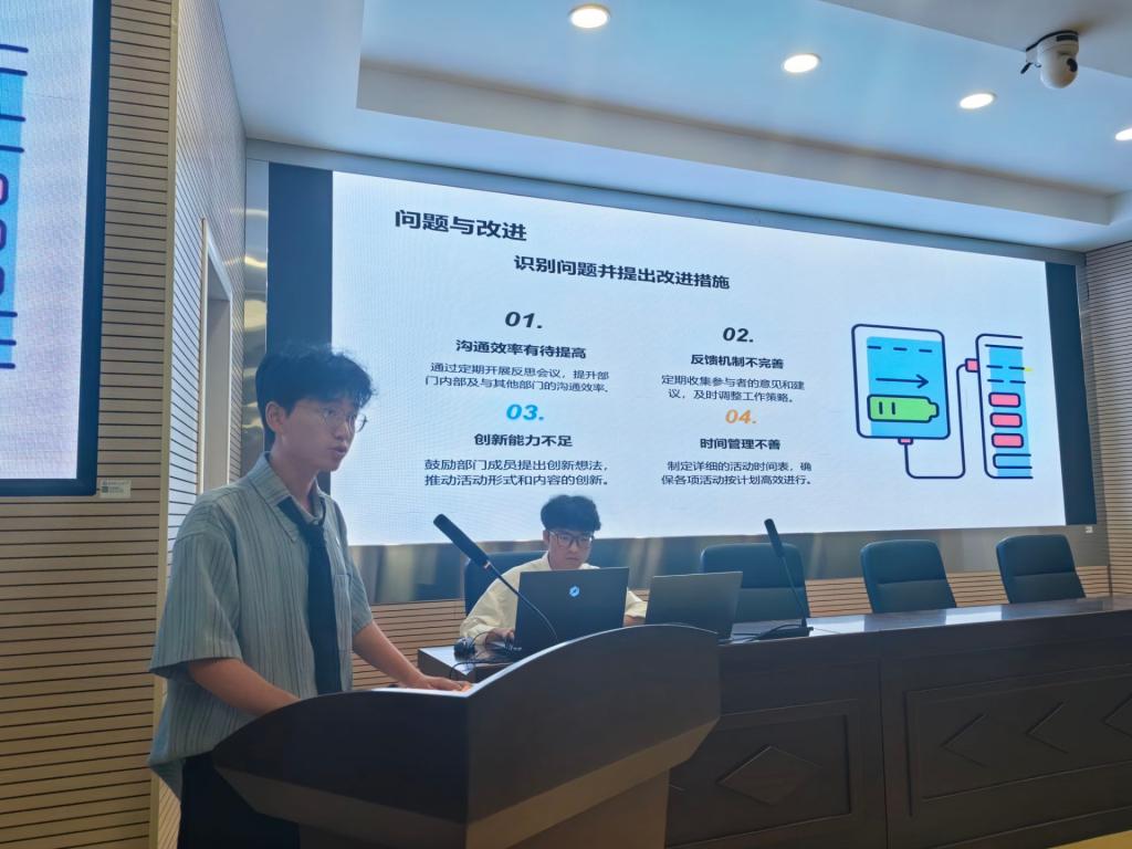 会议伊始,团委、学生会各部门依次汇报了工作成果,细致梳理了工作进展情况,全面展示了学院举办的各项活动。同时,对未来的工作进行了周密的规划与布局,确立了清晰的工作目标,并对存在的不足进行了深入的总结与规划。