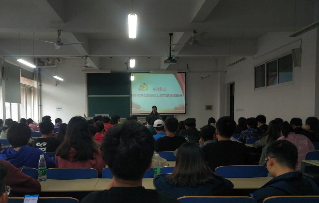2019年11月12日,数统学院与汽机学院第34期入党积极分子培训班在工一B215和B410开展了题为“与时俱进——不断推进实践基础上党的理论创新”和“党的奋斗历程”的党课培训,主讲人分别是马克思主义学院郭华老师和汽机学院党委书记邱国良,两学院近100位学员参加培训。