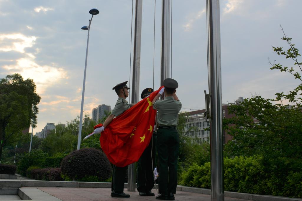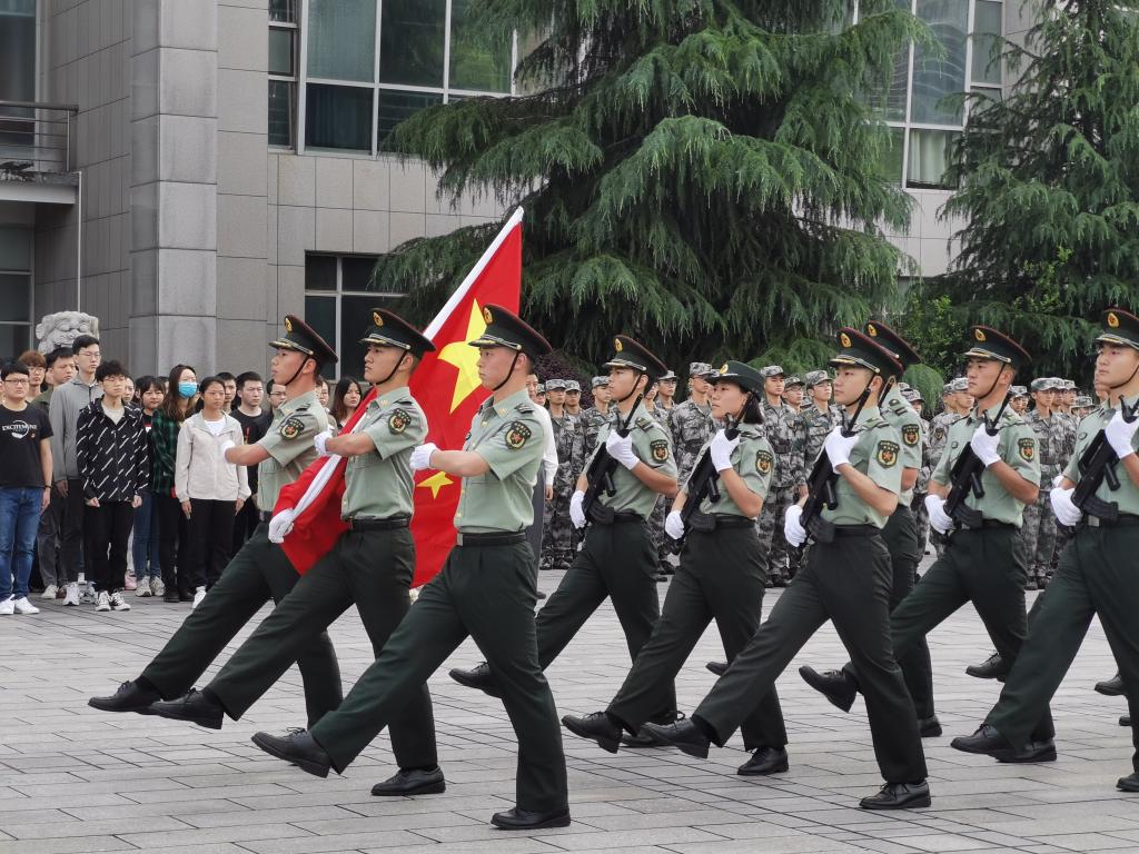 517日清晨,一声齐步走,全体肃穆。迎着朝阳,国旗班同志们步伐整齐,护送鲜艳的五星国旗进场,伴随着慷慨激昂的国歌,五星红旗冉冉升起,迎风飘扬。数学与统计学院在图书馆前举行升国旗仪式,并在国旗下开展了“学史崇德”的主题演讲活动。