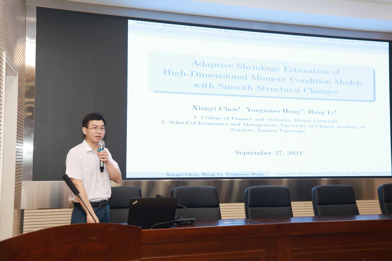 开幕式结束后,李海奇教授、张荣茂教授分别做了题为“Adaptive shrinkage estimation of high-dimensional moment condition models with smooth structural changes”“Ratio-controlled screening for structural break predictive regressions”的学术报告。以及9名研究生汇报了各自的研究成果。