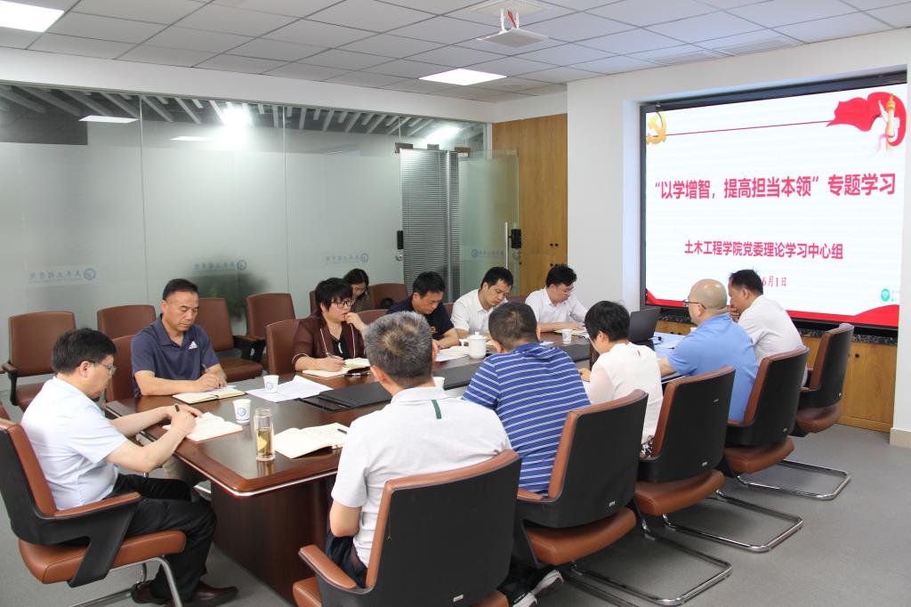 6月1日上午,土木工程学院党委理论学习中心组在工二A401会议室举行“以学增智,提高担当本领”专题学习。学院党委书记江河主持会议,副院长韩艳、蒋田勇、副处级组织员柳翼做专题学习领学发言,全体中心组成员参加学习研讨,校党委副书记刘建民参加并指导。