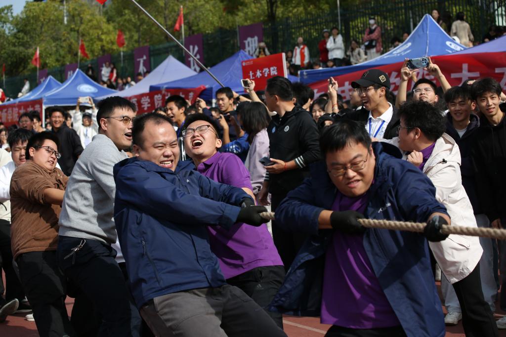 本届运动会共设60个比赛项目,新增了师生拔河、筷运乒乓球等趣味项目,吸引了超过5400名师生运动员同场竞技,参赛人数再创新高。在为期两天的激烈比赛中,学院师生团结一致,奋勇拼搏,屡创佳绩,充分展现了长理土木人勇于拼搏、团结协作的精神风貌。校党委书记付宏渊在与学院师生合影时,称赞地说道:“土木学院,让人羡艳!”