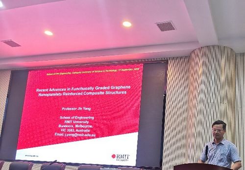 2019年9月17日下午2点30分,受XK星空土木学院力学系邀请,澳大利亚皇家墨尔本理工大学杨杰教授在工科二号楼B302进行了题为“功能梯度石墨烯增强纳米复合材料(FG-GPLRC)的最新进展”的学术报告。学术研讨会由学院副院长蒋友宝教授主持,力学系主任唐雪松教授、党支部书记董国朝博士等老师以及博士、硕士研究生共150余人出席了本次报告会。