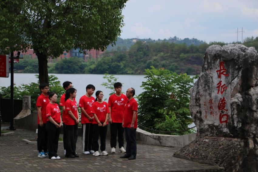 “于都,是长征源头和红色圣地,是中央红军长征集结出发地。1934年10月,集结在于都河畔的8.6万人在当地老百姓的帮助下顺利渡河,开始了举世闻名的二万五千里长征。”于都河畔,桥梁专家彭建新教授正在给学生讲解长征故事。