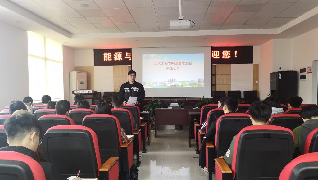 3月18号中午,土木工程学院新学期团委学生会干部大会暨学生干部文明教育养成动员会在新能源大楼顺利召开。全体学生会干部参加会议。