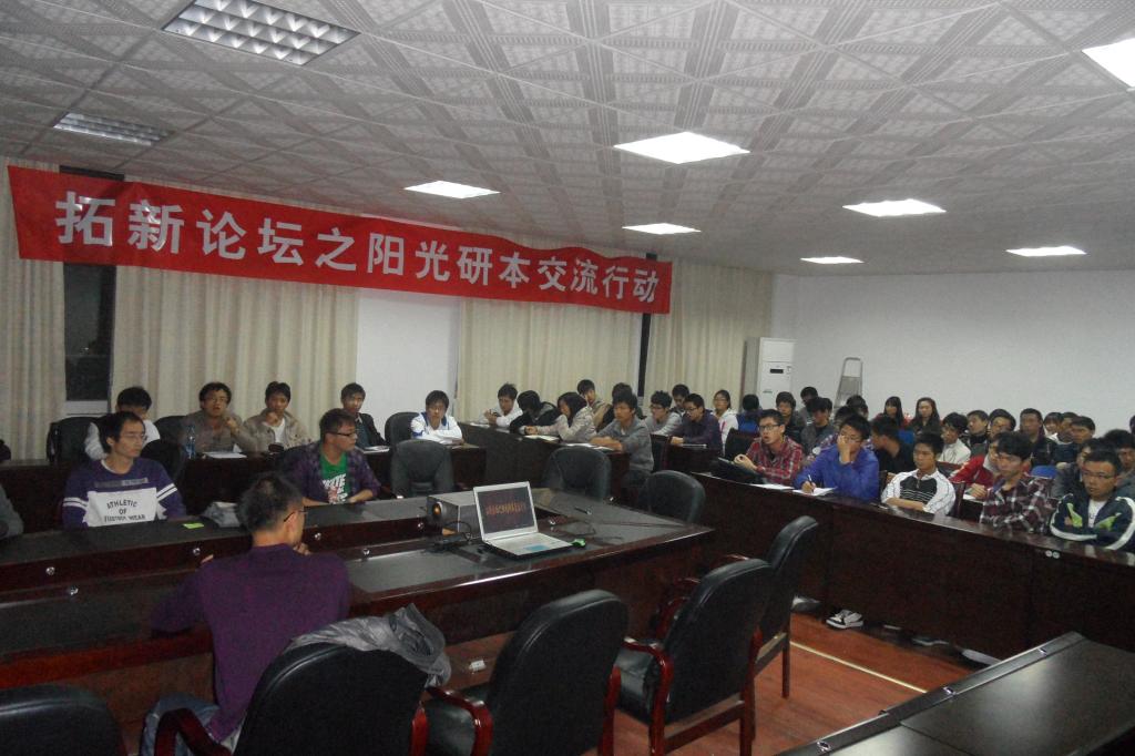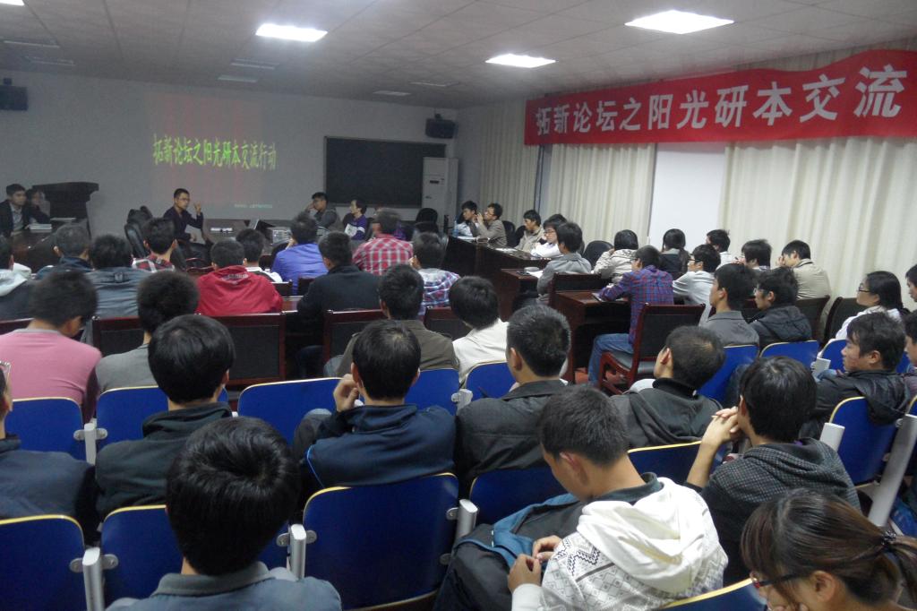 2011年11月28日晚19点整,工科二楼A-502教室座无虚席。筹备已久的土建学院“拓新论坛”之阳光研本交流行动拉开帷幕。在交流行动中,土建学院为09级各班配备了一名下班研究生,他们将为本科生提供长期的学习指导。阳光研本交流行动旨在为我院的考研学生提供考研复习准备期间的相关指导,并加强研究生与本科生间的在学术方面的交流。学工办的孙佳乐老师、部分优秀的研一学生和09级学生和参加了此次交流会。
