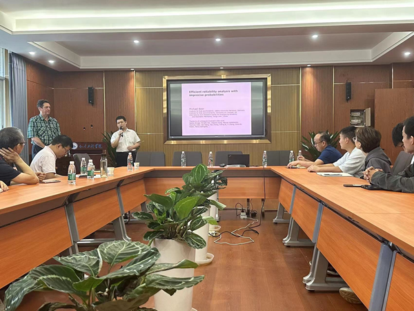 2023年10月1日上午,土木工程专业前沿系列名师专题、研究生博力学术论坛之大师引领系列讲座继续在云塘校区工科二号楼A304学术报告中心举行。德国汉诺威莱布尼茨大学(Leibniz Universität Hannover)风险与可靠性研究所所长Michael Beer教授受邀为师生们做了题为“Efficient reliability analysis with imprecise probabilities”的学术报告。报告会由土木工程学院张振浩教授主持,彭建新教授、夏桂云教授等教师以及40余位研究生参加了本次学术交流。