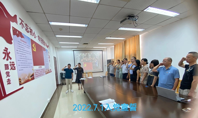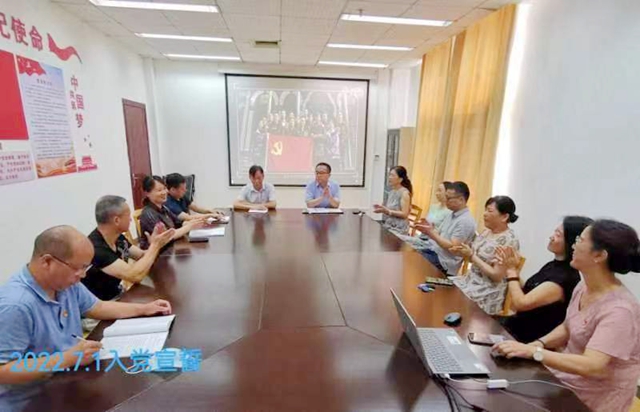 7月1日上午,在中国共产党成立101周年的大喜日子里,一支部在图书馆A811室开展主题党日活动。活动由支部书记喻权良主持,全体馆领导班子成员及一支部党员参加。