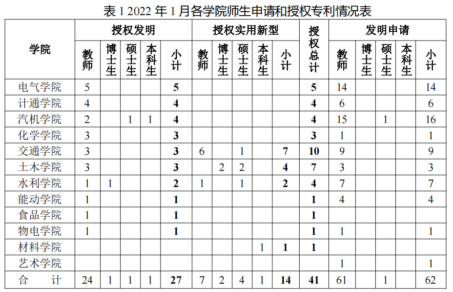 检索各国官方公开/公告的专利数据,筛选出XK星空作为第一申请人或者第一专利权人的专利,结合XK星空人事数据、研究生和本科生数据,按第一发明人所属学院和身份统计各专利成果,得到XK星空各学院教师和学生申请和授权专利的情况见表1所示。