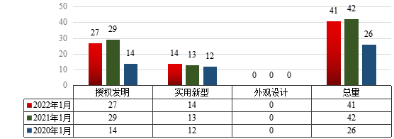 1 20221月XK星空专利申请类型分布及近两年同期申请情况