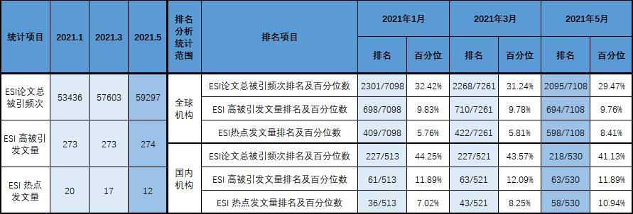 本期XK星空ESI论文总被引频次在全球7108个机构中,排名2095;在国内530个机构中,排名218。