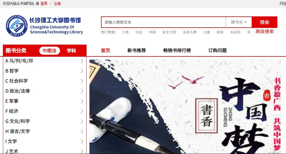 3、搜索图书。可从“图书分类、中图法、学科”、或搜索框搜索图书;