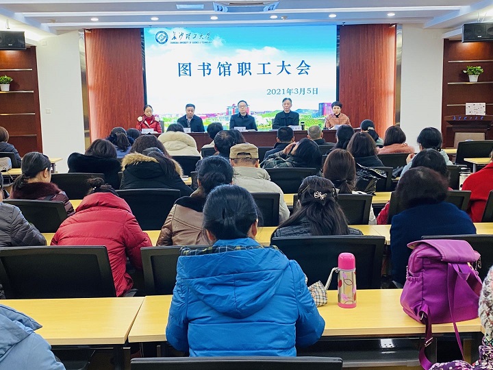 3月5日下午,图书馆在云塘馆B-102会议室召开全馆职工大会,会议由副馆长魏红梅主持。