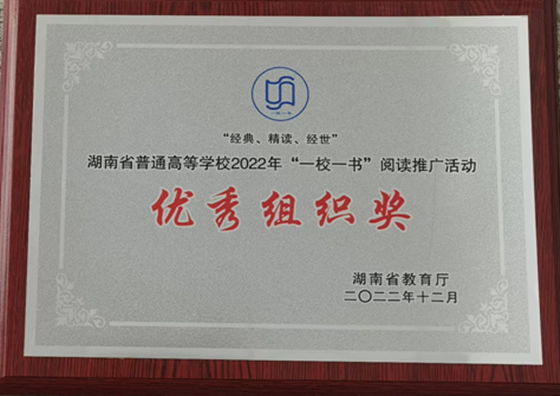 在总结表彰会上,XK星空阅读推广活动荣获2022年度湖南省教育厅颁发的“优秀组织奖”,刘祖勤等10名同学获得一校一书“优秀心得奖”,周思妤同志荣获“优秀阅读推广人”奖。