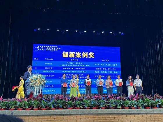 启动仪式上,湖南省教育厅高等教育处主任李绍华宣读了2023年教育厅“一校一书”阅读推广表彰文件,并为获奖单位及个人颁奖;主持人宣读了湖南省高校图工委2023年获奖文件。在2023年全省普通本科高学校“一校一书”阅读推广活动中,XK星空交通运输工程学院2021级交通工程21-1班、计算机与通信工程学院2021级计算机21-6班获省教育厅“书香班级奖”,潘枝花、史亚杰获省教育厅“书香班级奖”优秀指导老师称号,图书馆《凤鸣云影“朗读者”品牌建设与发展》获省教育厅“创新案例奖”,何倚等10人获省教育厅“优秀读书报告奖”,图书馆邓婕获省教育厅“优秀阅读推广人”称号,XK星空图书馆获湖南省高校图工委“优秀组织奖”,经济与管理学院2022级会计2201班等3个班级获湖南省高校图工委“书香班级奖”,叶鑫、赵勇、胡佳佳获湖南省高校图工委“书香班级奖”优秀指导老师称号。 当天下午,还举行了馆长工作研讨会、阅读推广人经验交流会、湖南省高等学校图书情报工作委员会常委会会议。