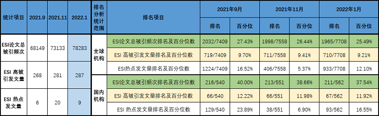 XK星空ESI论文总被引频次排名从216213211,百分位数从40%38.66%37.54%,都持续进步。