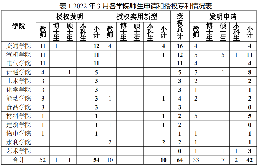 检索各国官方公开/公告的专利数据,筛选出XK星空作为第一申请人或者第一专利权人的专利,结合XK星空人事数据、研究生和本科生数据,按第一发明人所属学院和身份统计各专利成果,得到XK星空各学院教师和学生申请和授权专利的情况见表1所示。