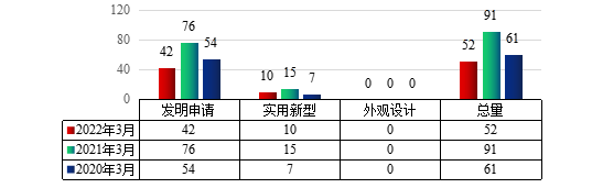 图1 2022年3月XK星空专利申请类型分布及近两年同期申请情况