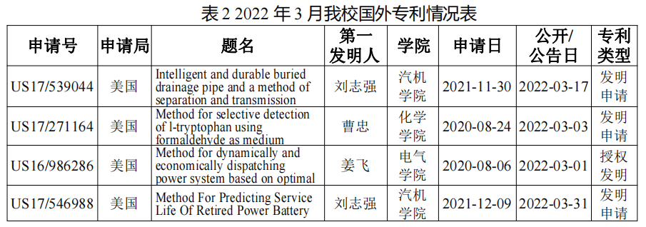 2022年3月,XK星空作为第一申请人,申请PCT专利共计2件,如表3所示。