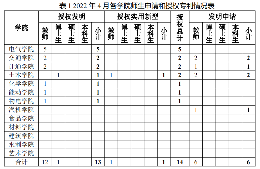 由图1和图2可见,20224月的专利申请和授权量相比往年同期均有大幅下降。经调研,因XK星空申请的专利近两年来多次被列入非正常申请名单中,专利审查工作被暂停了一段时间,学校目前已完成自审工作,重新制定了规范的专利申请与管理工作流程。专利审查工作正在逐步恢复中,后续统计数据也将逐步恢复正常。建议引入专利申请前查新,降低非正常申请,提升专利申请质量。