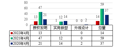 1 20224月XK星空专利申请类型分布及近两年同期申请情况