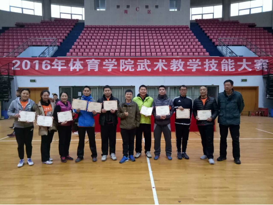 2016年11月26日,体育学院首届 “武术教学技能大赛”在金盆岭校区体育馆举行。院长张恳、书记章罗庚、王铁生教授以及学院在岗教师均参与了比赛并进行了交流。