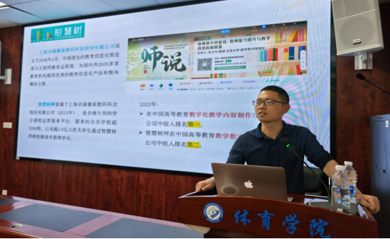 随后,智慧树刘老师简要介绍了智慧树平台在AI教育领域的技术优势与实践成果,重点阐释了AI技术如何赋能教学资源整合、课堂互动优化及学情数据分析。曾老师通过现场演示与实操指导,带领教师体验智慧树的功能模块,深入解析平台在课程设计、学生评价、个性化辅导等环节的应用路径。活动现场气氛活跃,教师积极参与互动,围绕数字化课堂的具体问题展开交流。