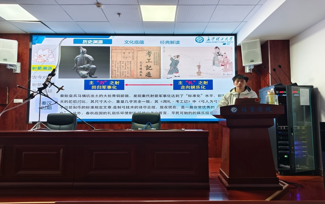 为深化中华优秀传统文化育人实践,探索“六艺”精髓与现代体育教育的融合路径,12月16日下午2:00,体育学院方俊辉老师在云塘校区体育馆多功能报告厅举办“六艺之古今弓箭的文化与项目讲解”通识讲座,全校50余名弓箭及传统文化爱好者参与此次活动。