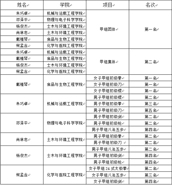 2025年湖南省大学生武术比赛获奖情况一览表