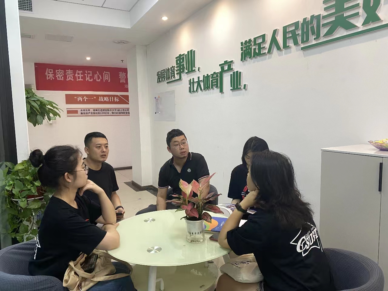 7 月 4 -6日,实践团成员在指导老师刘丽云教授的带领下前往湖南省体育产业集团及其旗下企业湖南巨人体育科技有限公司进行调研。