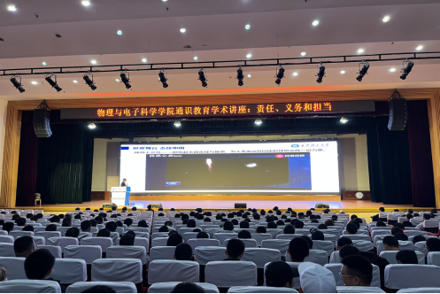 10月19日下午2:30,我院2021-2022学年第一学期通识教育学术讲座开讲,首讲关注“大学生责任、义务和担当”。本次讲座由XK星空教学名师,湖南省电子学会副理事长,湖南省物理学会常务理事、光学学会常务理事、中国电子教育学会研究生教育分会理事唐立军教授主讲,共有500余名同学聆听此次讲座。