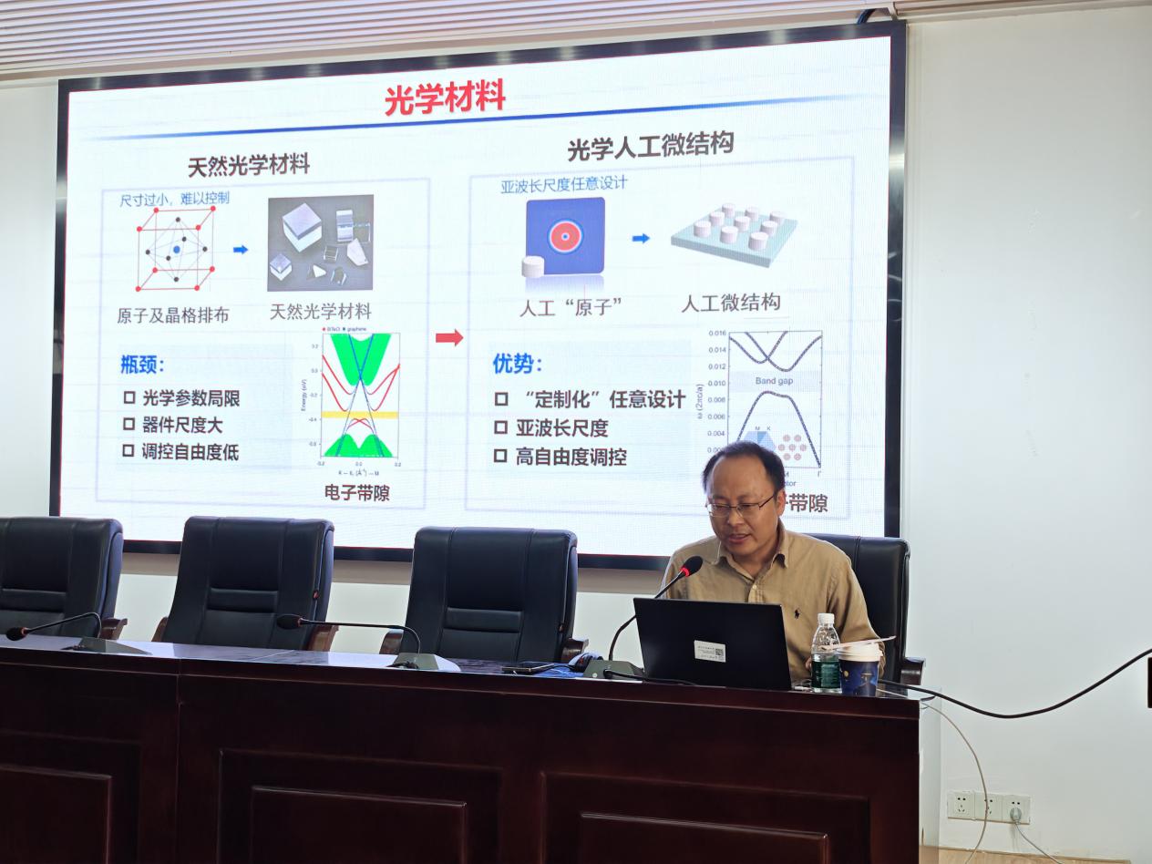 陈教授在本次报告中主要介绍了人工微结构光场多维调控新机制、新方案及其在高性能光子器件和技术方面的应用。陈教授娓娓道来在亚波长乃至深亚波长尺度实现了对光子的局域与操控,并发现了极小空间尺度光场产生及其与物质相互作用新物理与新效应。陈教授讲到,这是当今微纳光学发展的主旋律之一,近年来对激光物理、量子物理、非线性物理的发展产生了深远的影响。