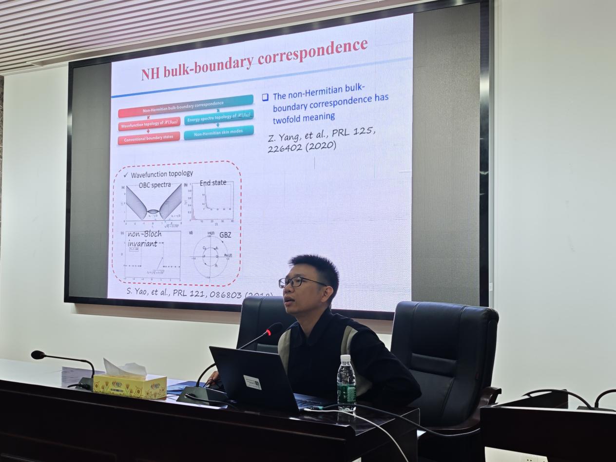 报告进入尾声,邓教授与参会师生积极互动交流,并对大家提出的问题给予专业耐心的回答,最后报告会也在热烈掌声中圆满结束。此次精彩的报告,不仅帮助同学们对声子晶体中的非厄米趋肤效应有了更深刻的认识,同时也为学院的科研工作提供了良好的学习氛围。