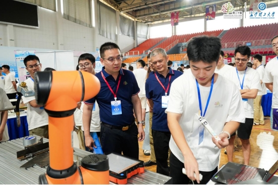 电子动态调光的防眩目眼镜、能“语音控温”的护膝系统、拥有“双臂”的诊断手术机器人……比赛现场,各团队参赛作品琳琅满目,成果涉及工业、能源、交通、教育、农业、旅游、健康等社会生活多个领域。参赛队伍通过作品展示和分组答辩等环节,充分展现了自身在电子信息领域的创新思维和实践能力。评审专家们认真审阅参赛作品,深入了解其实现细节及应用情况,并与参赛选手深入交流,为他们提供详细的指导意见。